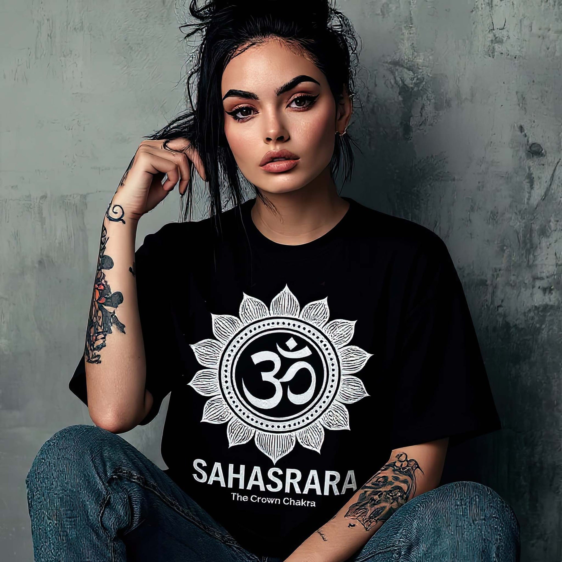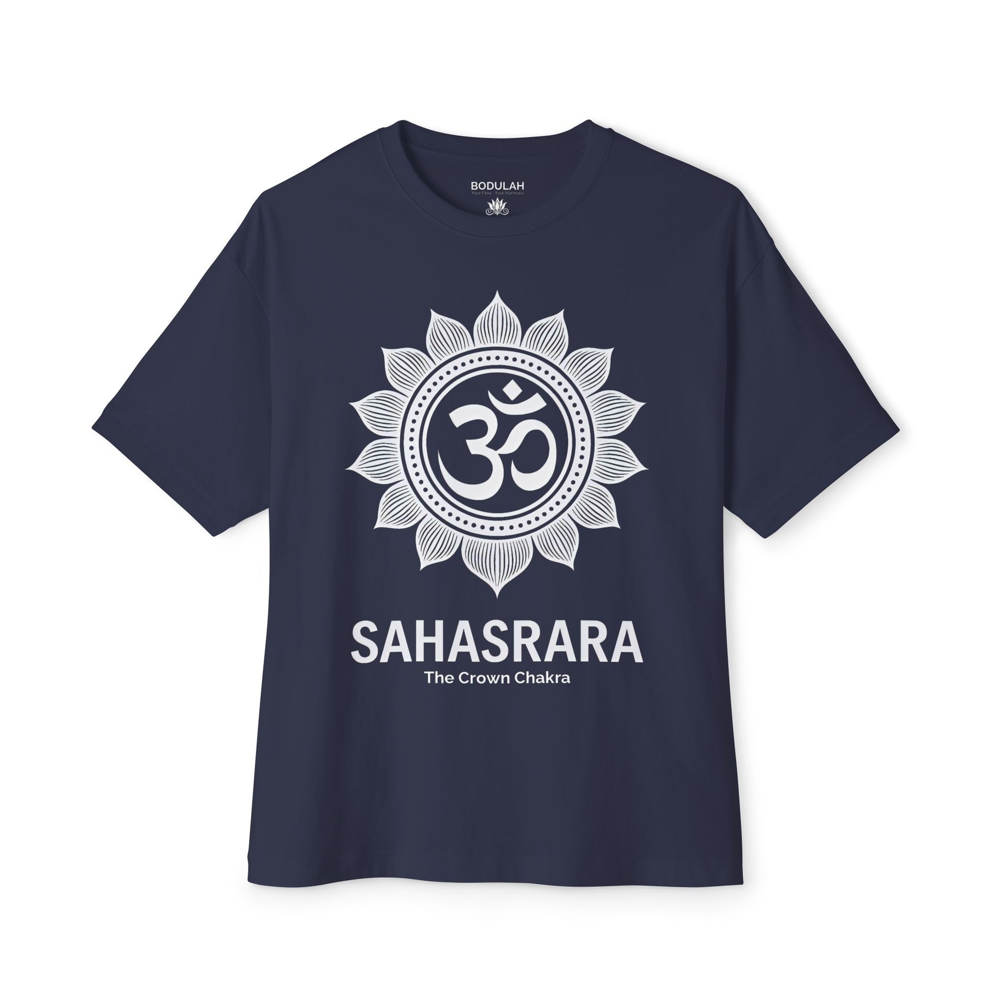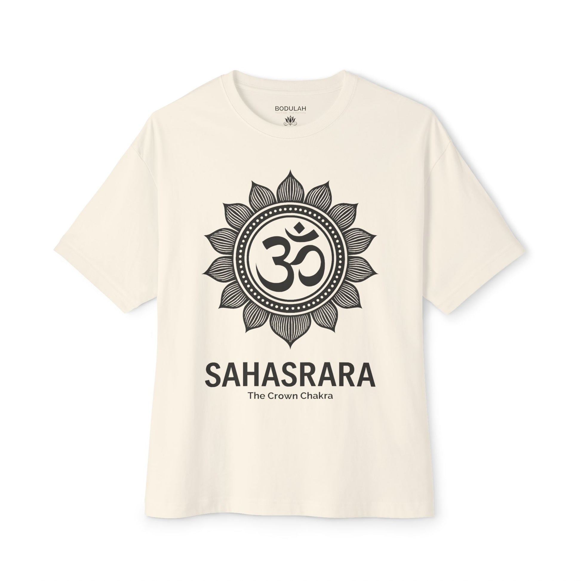 Crown Chakra T-Shirt – Oversized Unisex Tee with Sahasrara Lotus, Spiritual Yoga Clothing Premium Cotton