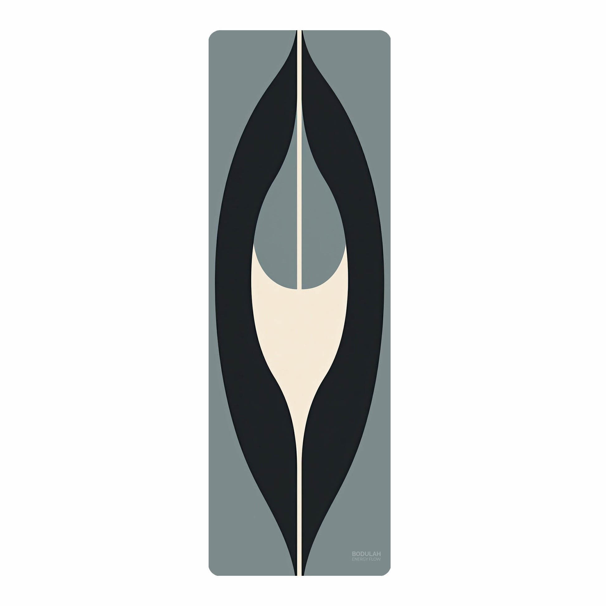 Channel the essence of sacred stillness through smooth, symmetrical shapes and grounding tones. The elegant contrast of charcoal black against soft ivory flows within a muted grey field - inviting introspection, silence, and strength.