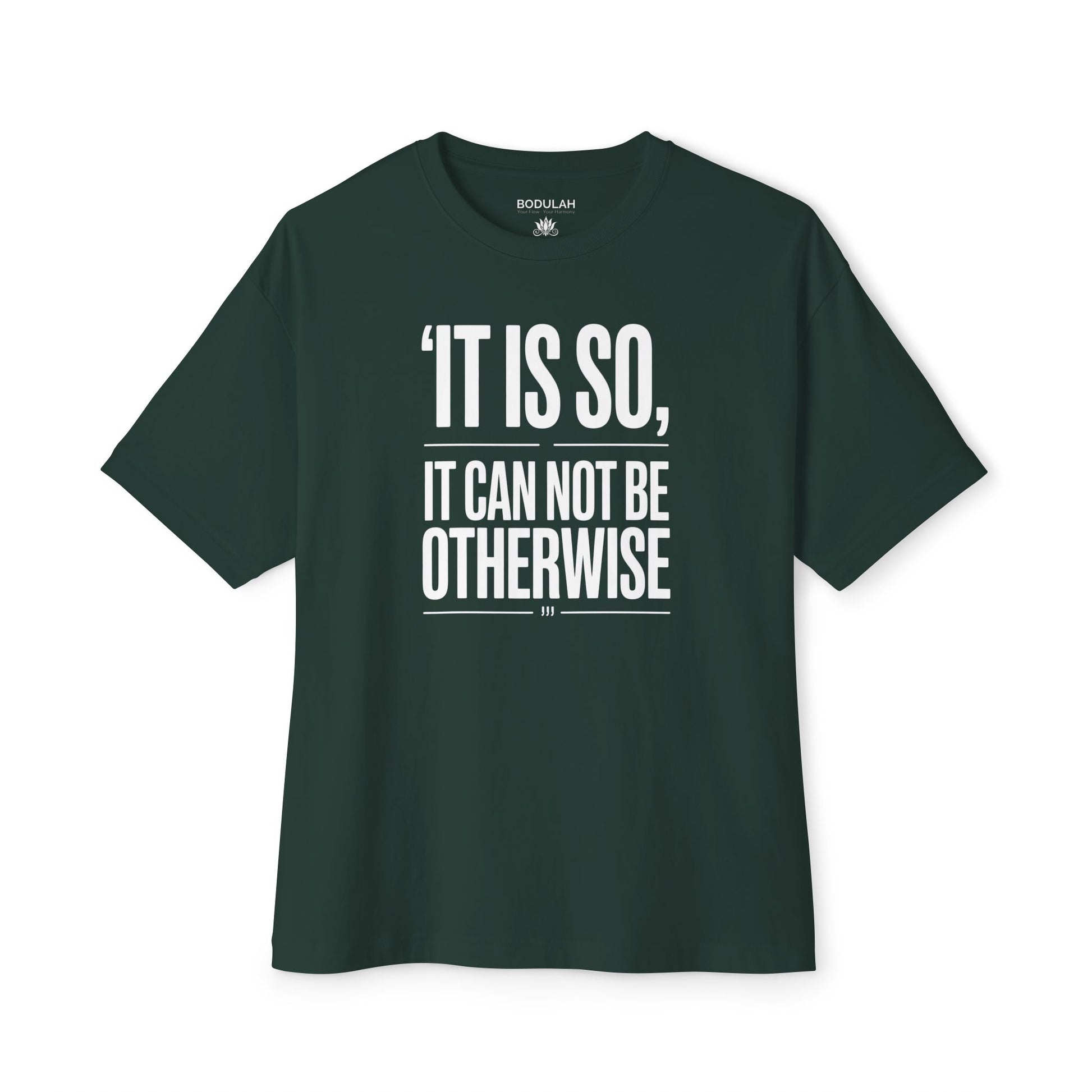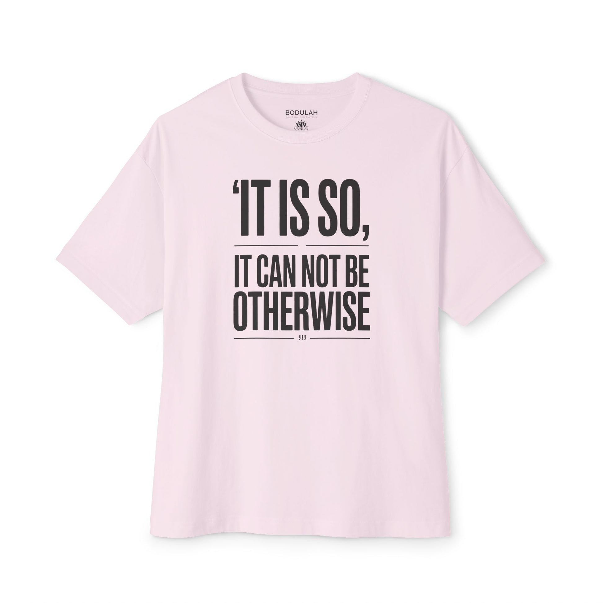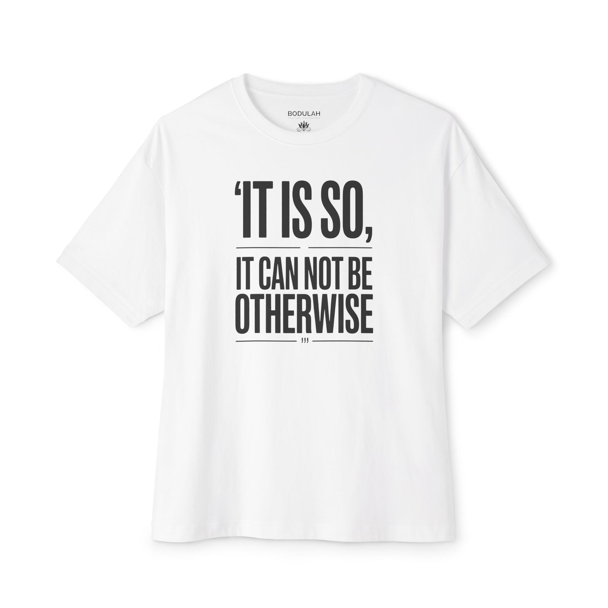 Step into acceptance and destiny with the Kismet Oversized T-Shirt from Bodulah. Featuring the bold affirmation “It Is So, It Cannot Be Otherwise” on the front and a lotus with KISMET on the back, this tee embodies surrender to life’s flow and trust in the path ahead.