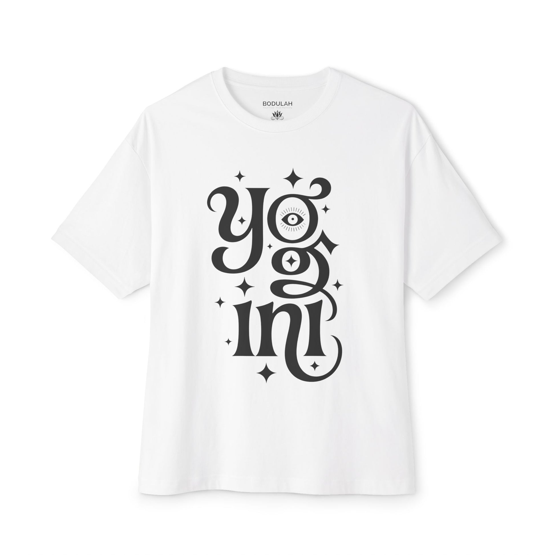 The Yogini Yoga T-shirt celebrates feminine strength, intuition, and spiritual flow. Designed with a bold typographic graphic and third-eye detail, this ethically made cotton tee is perfect for yoga, meditation, festivals, or casual mindful living. Soft, breathable, and versatile, it empowers you to embody your inner yogini wherever you go.